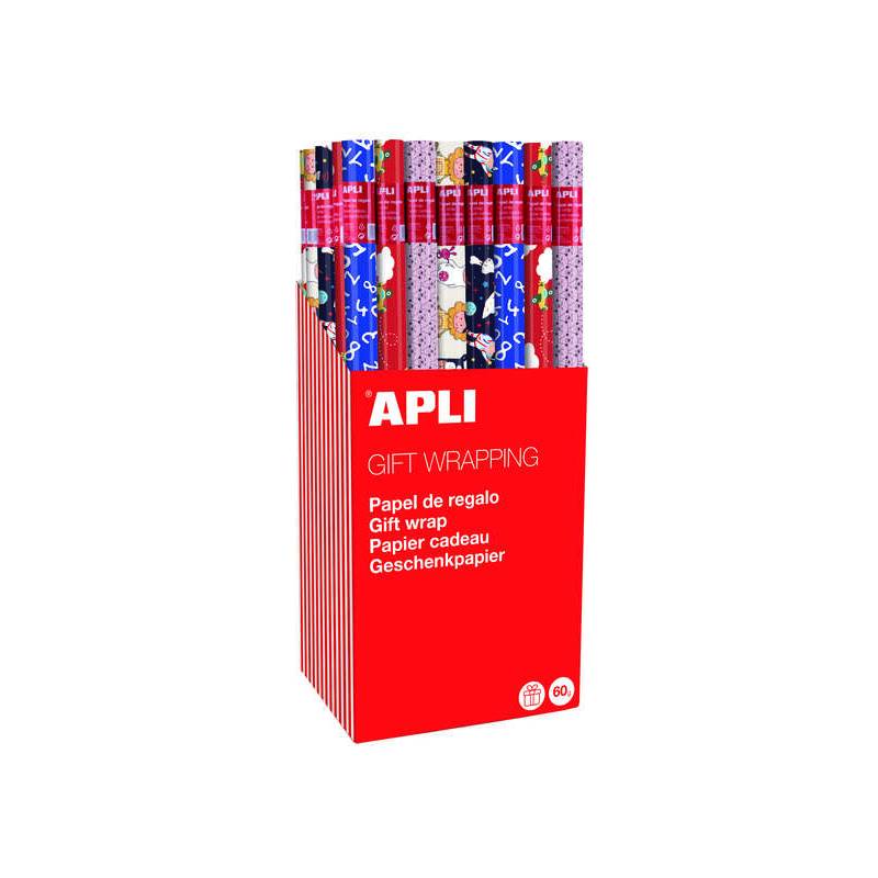 ¡Todo lo que necesitas para envolver tus regalos esta Navidad! Este expositor Apli incluye 55 rollos de papel de regalo: 11 rollos por color, con 5 diseños festivos diferentes. Cada rollo mide 0,70 x 2 m, ideal para envolver cajas, regalos pequeños y detalles navideños.