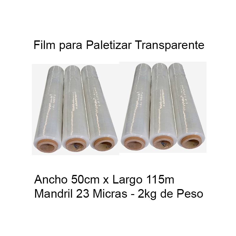37.50€ + IVA. Film Paletizar Extensible 50 cm x 115 m – 23 micras, transparente (2 kg).