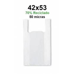 Las Bolsas de Plástico 42 x 53 cm de 50 micras, fabricadas con un 70 % de material reciclado, están pensadas para ofrecer una combinación equilibrada entre resistencia, capacidad y compromiso medioambiental. Su grosor de 50 micras proporciona una excelente solidez, permitiendo su uso en tareas de embalaje y almacenaje que requieren una mayor durabilidad.