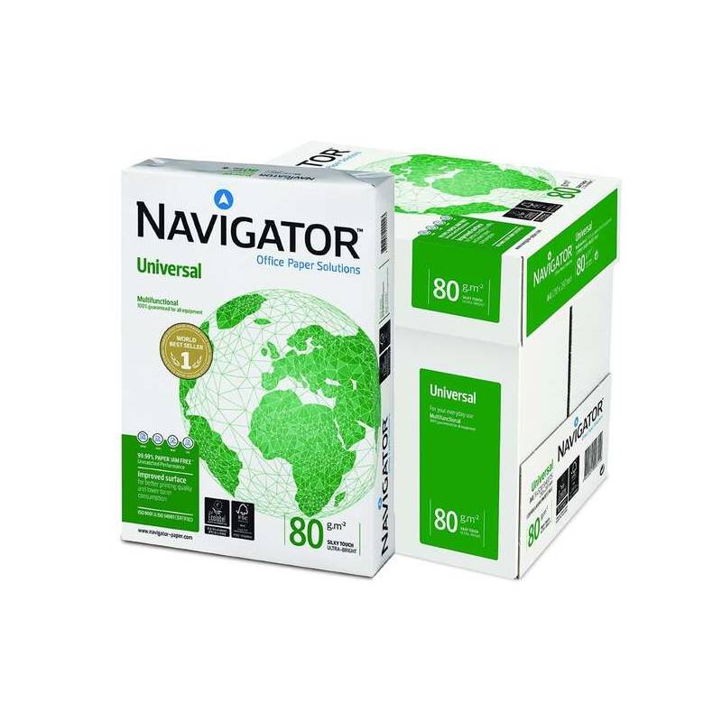 Folios Navigator 80g/m². Garantiza máxima blancura y compatibilidad con tus impresoras para un rendimiento profesional. Compra al por mayor y ahorra con 2500 hojas de calidad contrastada.